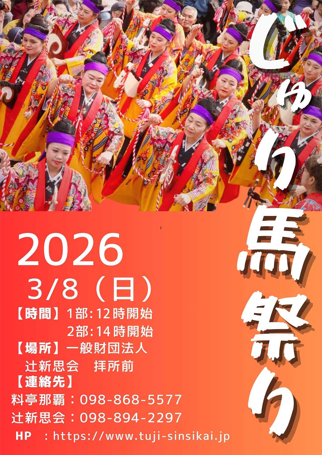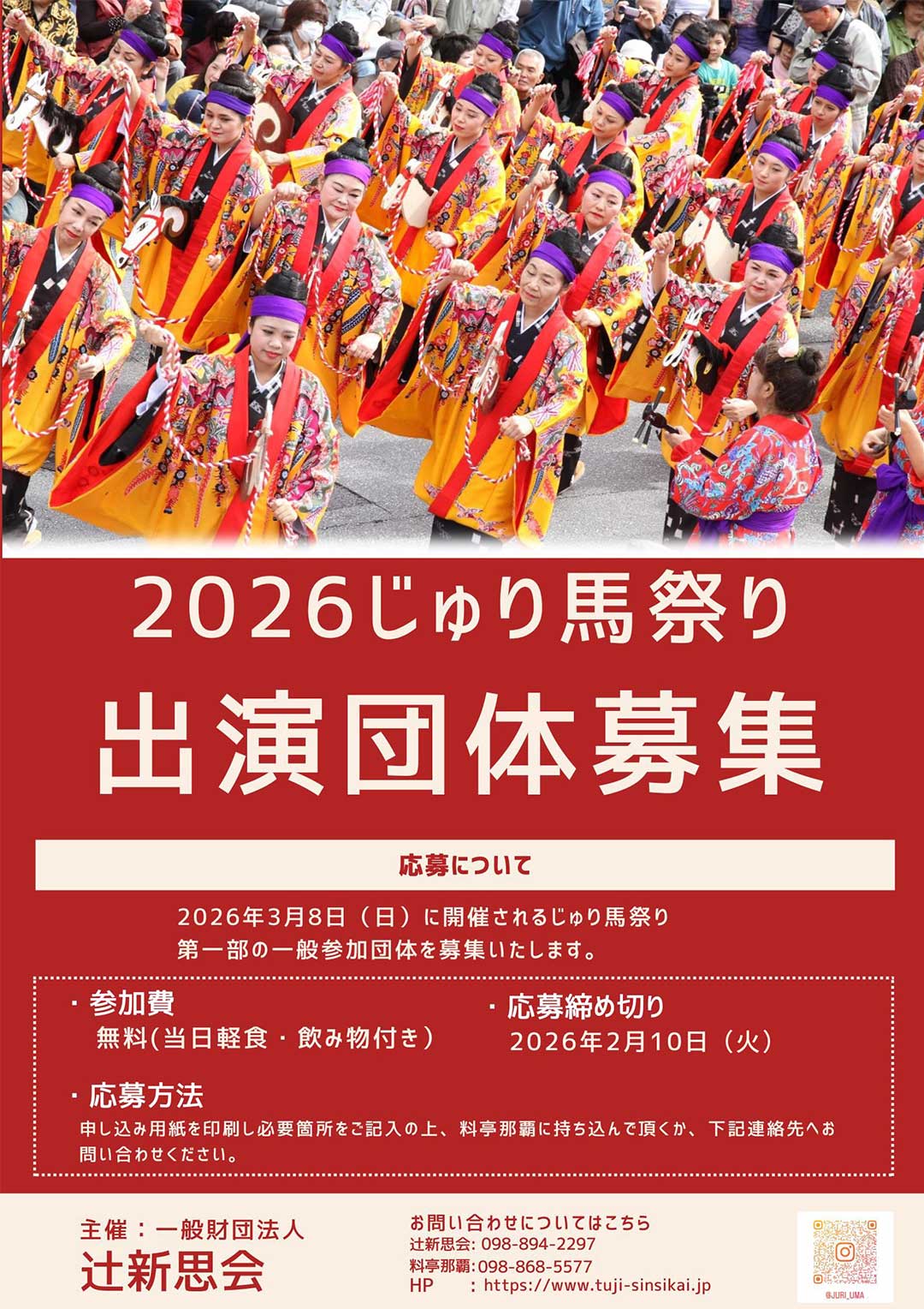 「じゅり馬祭り」や「旧廿日正月神事」など、沖縄県那覇市辻の祭祀と歴史・伝統文化の継承と普及、地域の活性化への寄与を目指す団体です。ただいま、ホームページを準備中です。先行して、2026年3月8日開催「じゅり馬祭り」の情報を掲載いたします。